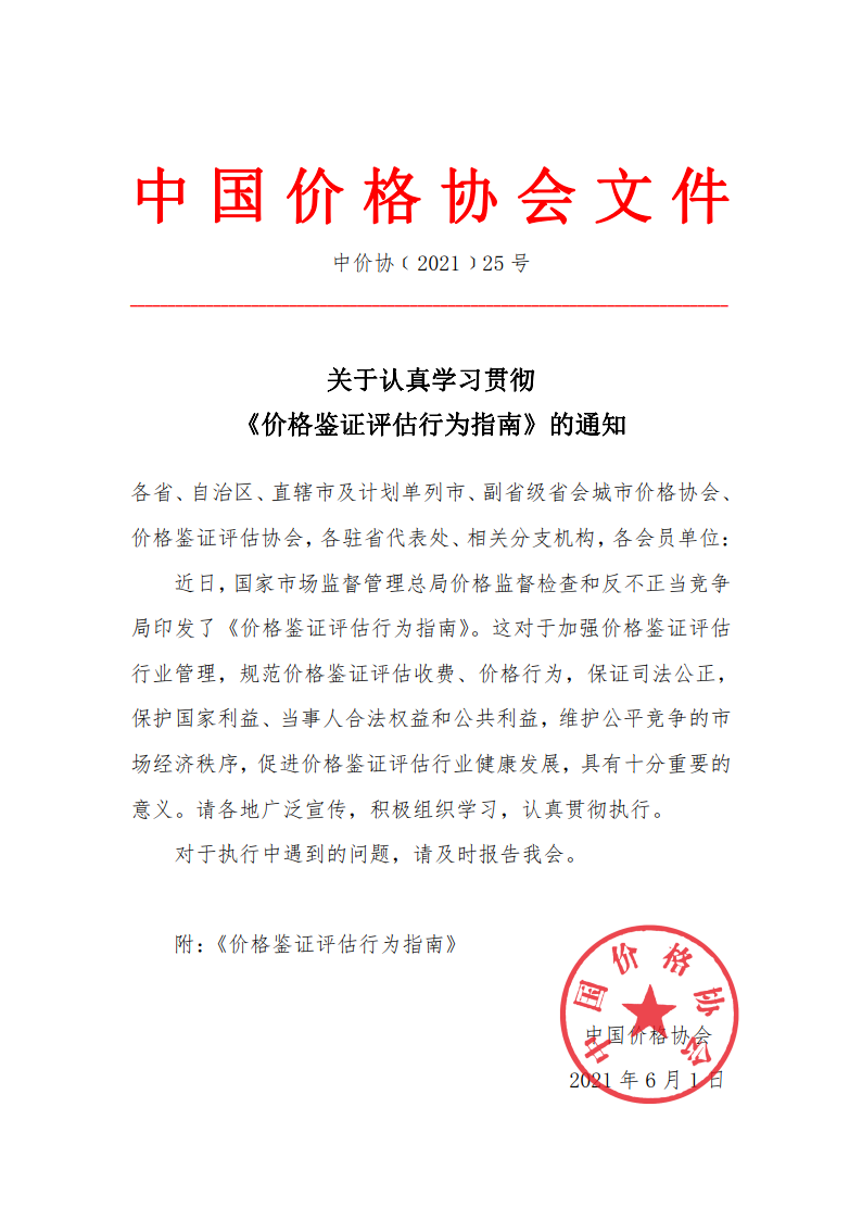 關(guān)于認(rèn)真學(xué)習(xí)貫徹 《價格鑒證評估行為指南》的通知